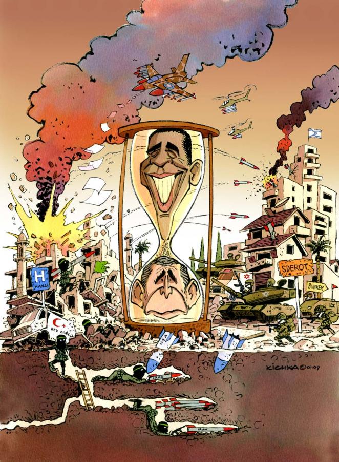 שעון חול בעזה, ינואר 2009 צוייר עבור ויף/אקספרס, בלגיה Dessiné pour le Vif/Express, Belgique