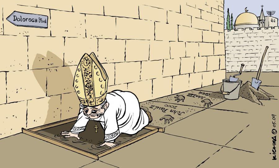 האפיפור בנדיקטוס ה-16 מגיע לביקור. קדמו לו יוחנן ה-23 ב-1964 ויוחנן-פאולוס השני בשנת 2000. התרגשות, מתח, סידורי בטחון קפדניים, פקקים, מחסומים, משטרות ובלגנים. אבל אנחנו הירושלמים, רגילים. האפיפיור התבלט לאחרונה בהצהרה אומללה בקמרון וברהביליטציה שנויה במחלוקת של הארכיבישופ ווילימסון, מכחיש שואה מוצהר. כל מילה וכל פליטת פה של בנדיקטוס תישקל כנגד כל אבני הכותל, אבני מסגד אומר וכנסיית הקבר גם יחד. אזני העולם נישאות למוצא פיו. וזכרו, במזרח התיכון הכל אפשרי. המלצתי לירושלמים: בימי ביקורו בבירה, ללכת ברגל תוך כדי מדיטציה