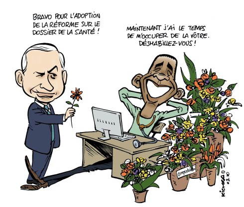 Au moment où le projet de réforme de l’assurance maladie d’Obama est adopté, Bibi débarque aux USA sur fond de tensions entre Washington et Israel.