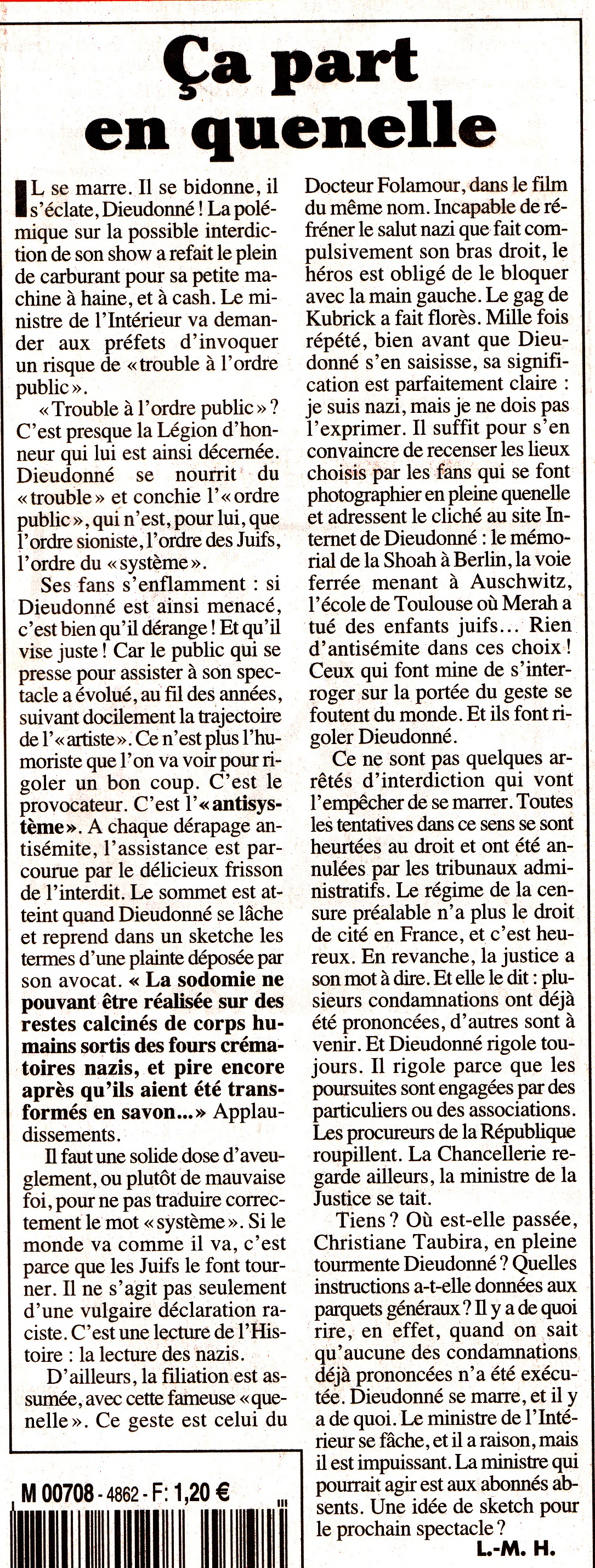 Un article paru dans Canard Enchaîné et un dessin de plus que je viens de réaliser. Car il m’est impossible de ne pas réagir.