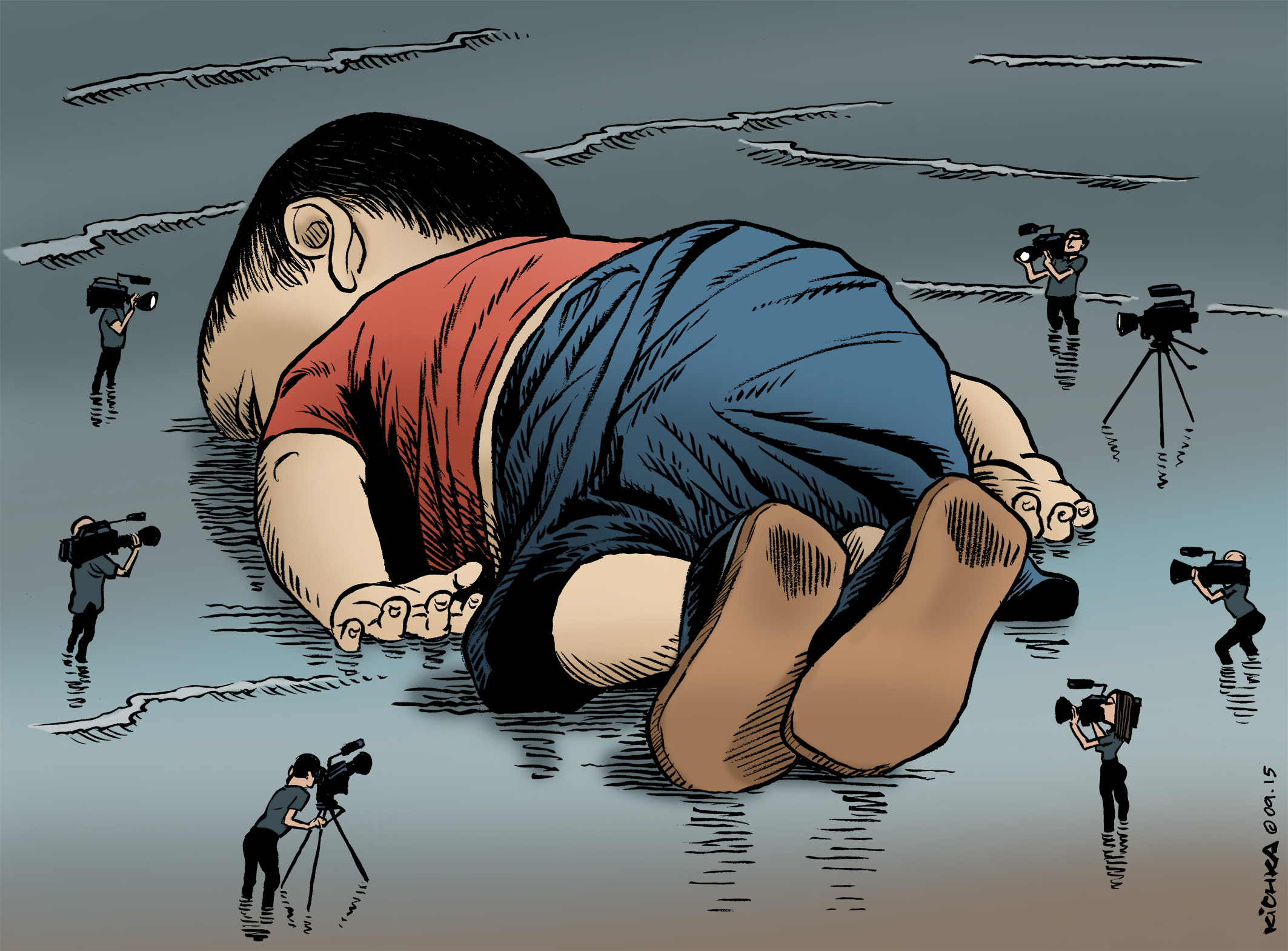 Bonjour M Kichka, je souhaite utiliser votre dessin pour une recherche sur le photojournalisme , je suis du 02 dans l’aisne et je m’intéresse avec les élèves sur le pouvoir de l’image et de la photographie pour dénoncer les horreurs de la guerre, la condition des migrants (après avoir vu le film Human Flow, très évocateur de la souffrance des réfugiés et de leurs conditions de vie) puis l’étude servira à démontrer comment cette image a pu éveiller les consciences des premiers ministres notamment au Canada, Allemagne et France face à cette crise des réfugiés syriens.
