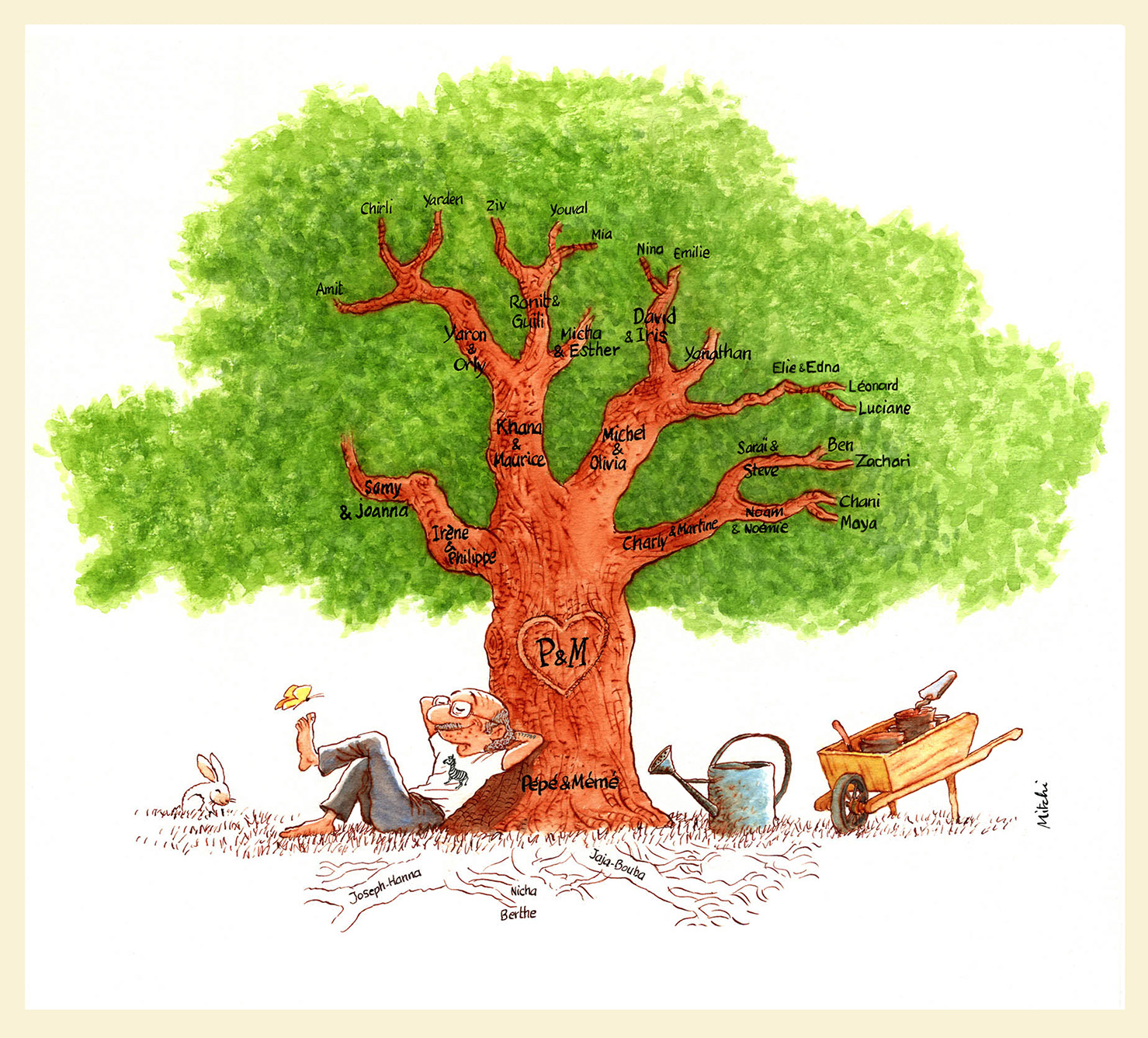 Ma soeur Irène qui était à ses côtés m’a dit qu’il portait le tee-shirt que je lui avait dessiné pour ses 90 ans: mon père au pied de l’arbre généalogique de la famille Kichka.