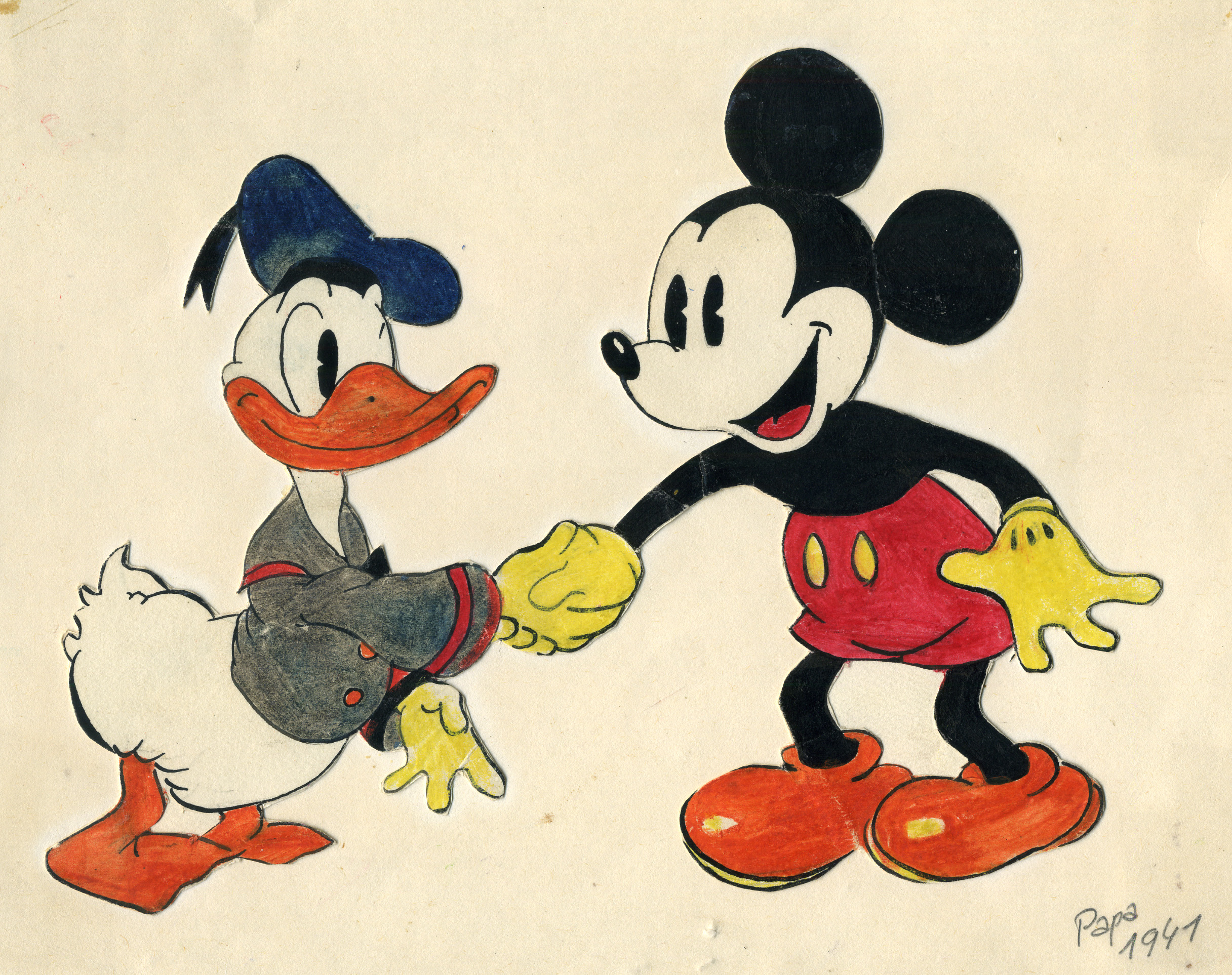 Les Sept Nains du film Blanche Neige ont été offerts à la collection de Yad Vashem à Jérusalem, Mickey et Donald se serrant la main sont accrochés au mur de mon atelier d’où ils me sourient chaque matin.