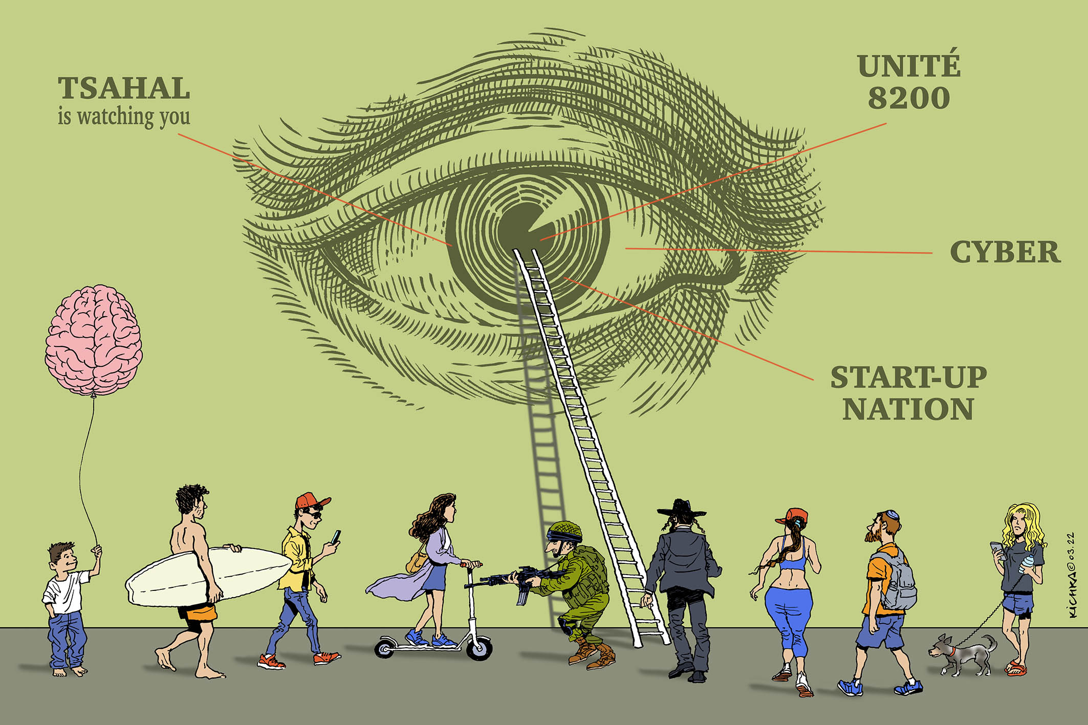 Une série d’articles sur la société israélienne à travers le prisme de l’armée et de la start-up nation, sur la cyber défense et la cyber offensive, sur Tsahal comme tremplin de la vie pour diverses couches de la société civile. Un travail d’enquête mené par la journaliste Aline Jaccottet pour le site suisse d’information Heidi.news. Une autre manière de mieux comprendre les enjeux de la société israélienne. J’ai eu le plaisir de réaliser l’illustration qui accompagne l’éditorial. Les huit articles très intéressants et riches en informations paraitront au rythme d’un par semaine sur leur site.