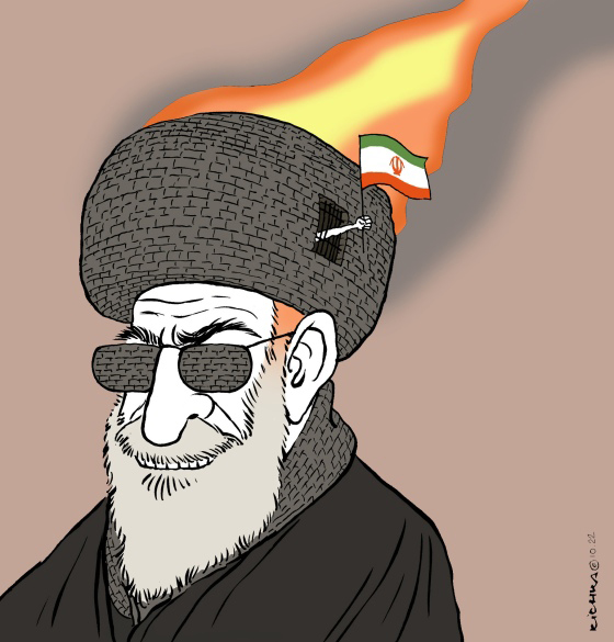 J’avais mis en ligne un dessin de soutien aux manifestants contre le régime des ayatollahs dans plusieurs villes d’Iran. Une main qui sortait de prison brandissait le drapeau iranien. Un collègue iranien réfugié politique en Europe m’a gentiment fait remarquer que le drapeau iranien est celui que brandissent dans les manifs les pro-régime et que cela créait un contre-sens dans mon message. Je devais donc trouver une solution. Je l’ai changé en drapeau noir avec le mot HELP!