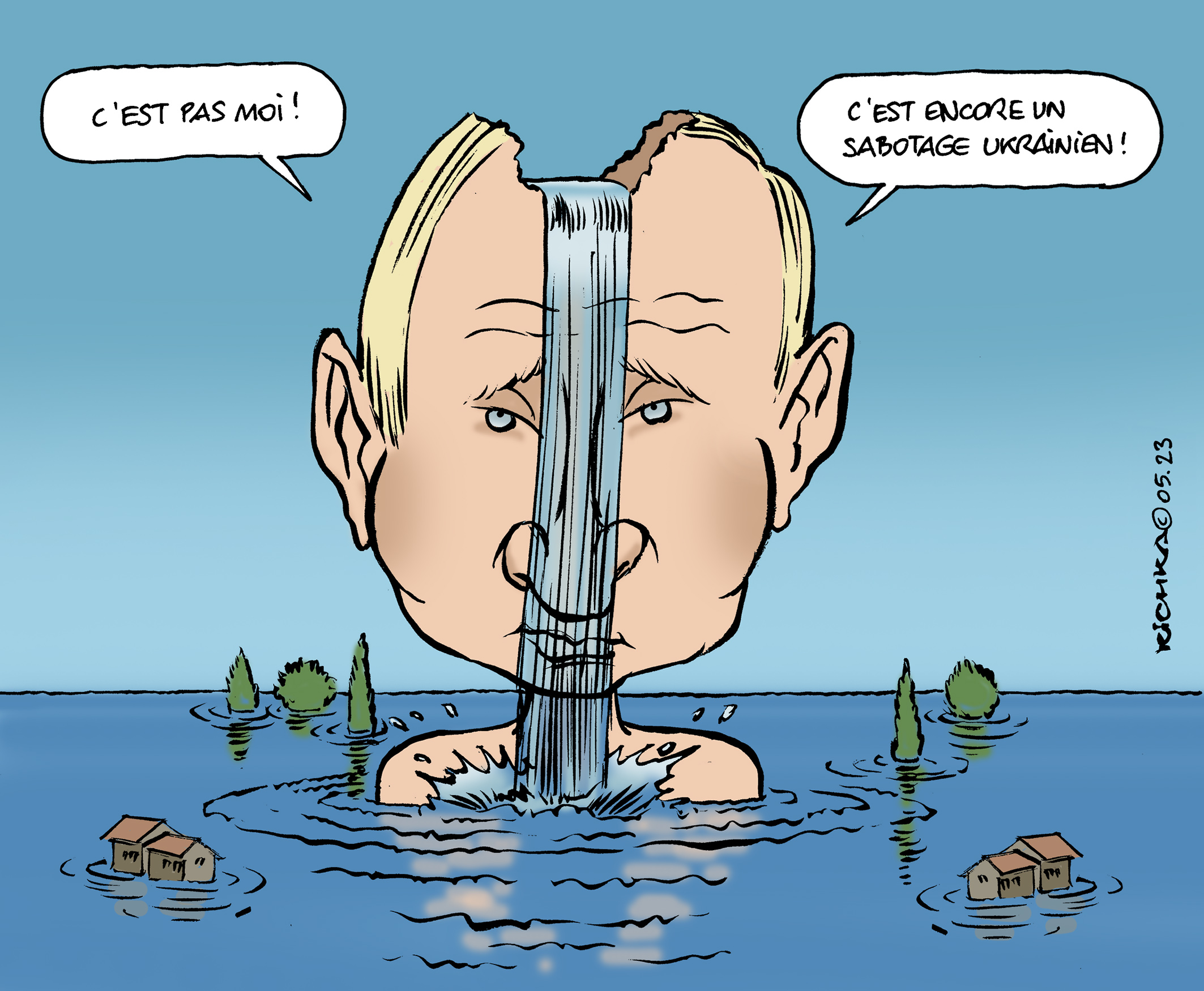 Qui a fait sauter le barrage hydroélectrique de Nova Kakhova en Ukraine? Poutine accuse bien sûr l’Ukraine d’auto-sabotage! Mais la question de la responsabilité est simple: Qui a intérêt à inonder les villes ukrainiennes et à retarder la contre-attaque ukrainienne contre l’armée de Poutine, Wagner et Cie? Qui prend un plaisir sadique à semer la détresse au sein de la population ukrainienne? Qui est le dictateur sanguinaire qui accuse l’Ukraine de nazisme? Qui se distingue depuis seize mois dans les crimes de guerre? Qui est le champion actuel des crimes contre l’Humanité? Prévenez-moi quand vous aurez la réponse!
