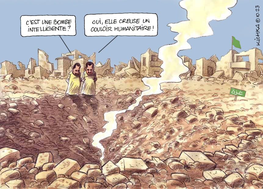 Un couloir humanitaire est ouvert dans la Bande de Gaza pour permettre à la population de descendre dans le Sud, loin des bombardements israéliens imminents. C’est le Hamas qui essaye de les en empêcher, souvent par la force. Les images de cadavres dans les décombres de Gaza est leur arme médiatique et psychologique. C’est terriblement cynique mais qu’attendre d’une organisation fondamentaliste islamiste qui comme Daesh sanctifie la mort?
