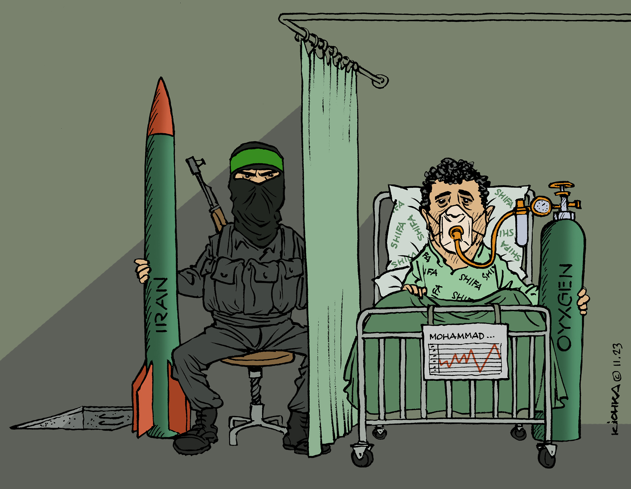 Al-Shifa, Gaza. En surface un hôpital. En sous-sol un refuge de terroristes du Hamas et un arsenal d’armement et de roquettes lancées sur les villes d’Israel depuis l’hôpital. Et la cerise sur la gâteau, la population civile des gazaouis, les malades, les blessés, le personnel médical et les aide-soignants comme bouclier humain.