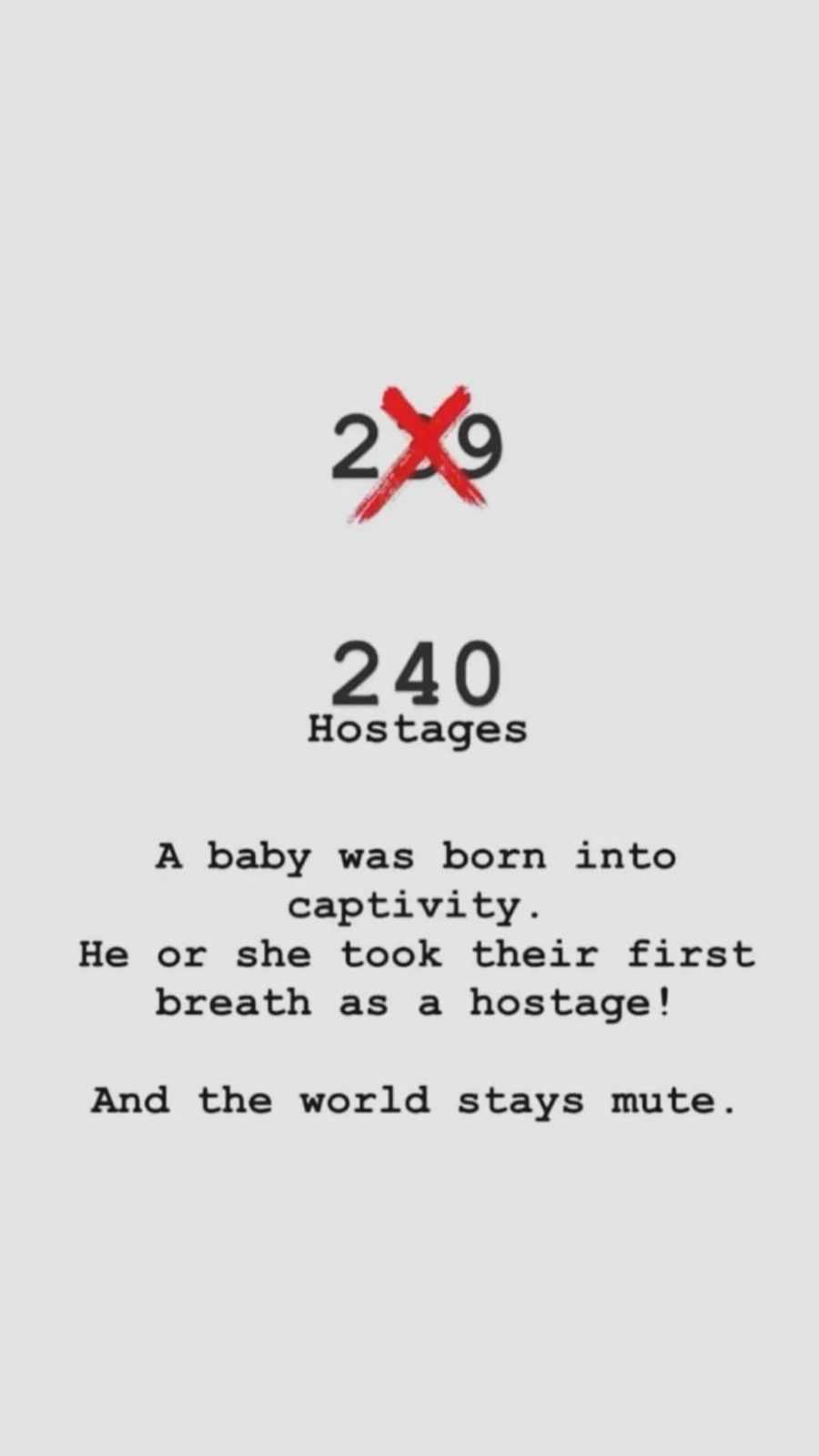 Ce qui correspond à 239 otages plus une naissance en captivité! Quel pays au monde pour lequel les Droits de l’Homme sont une valeur de base supporterait-il une telle situation?