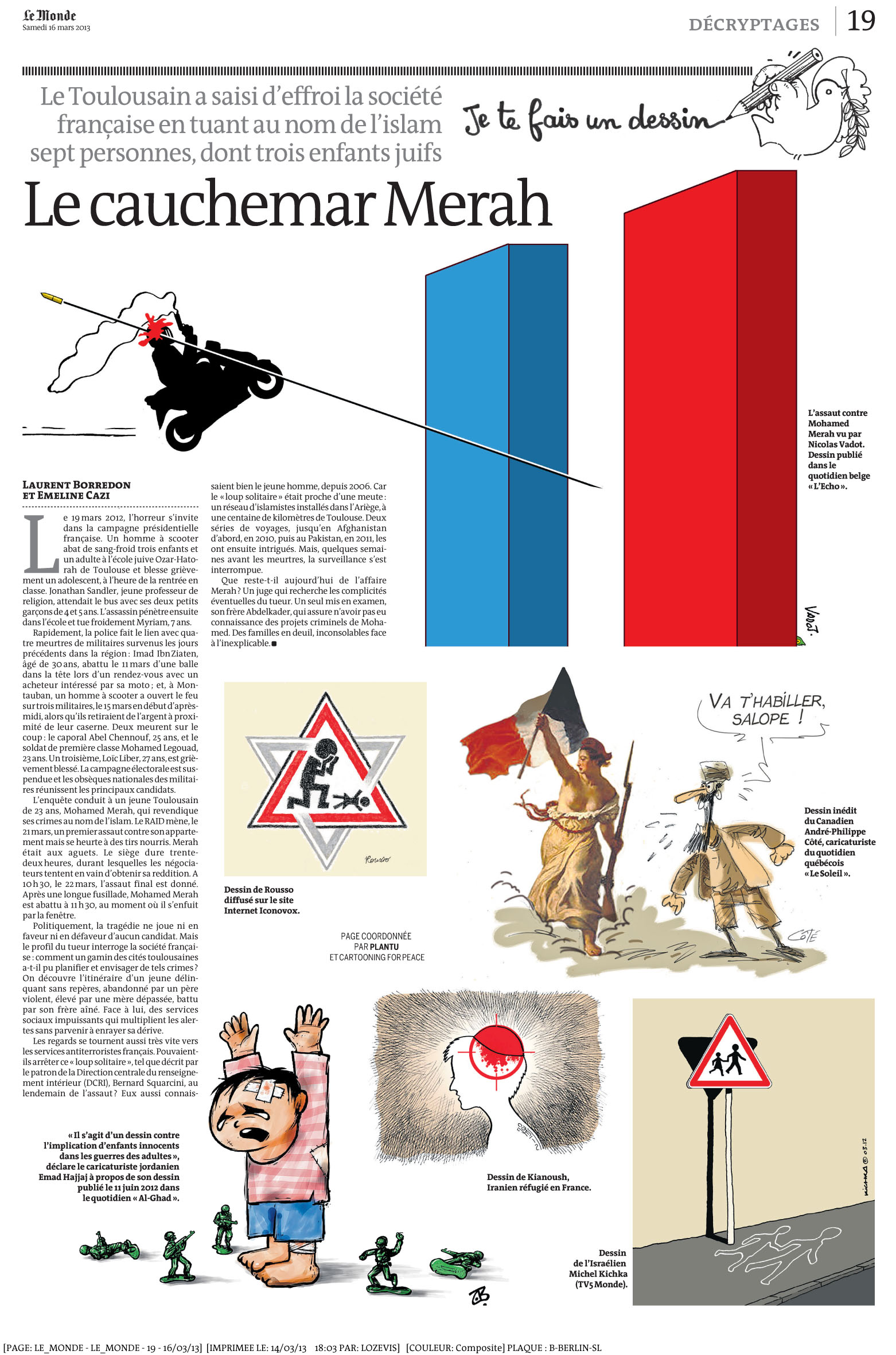 Page « décryptage » du journal Le Monde augmentée de dessins de Cartooning for Peace. Un rendez-vous hebdomadaire initié par Plantu, pour les lecteurs amateurs d’information objective et de commentaires subjectifs dessinés.