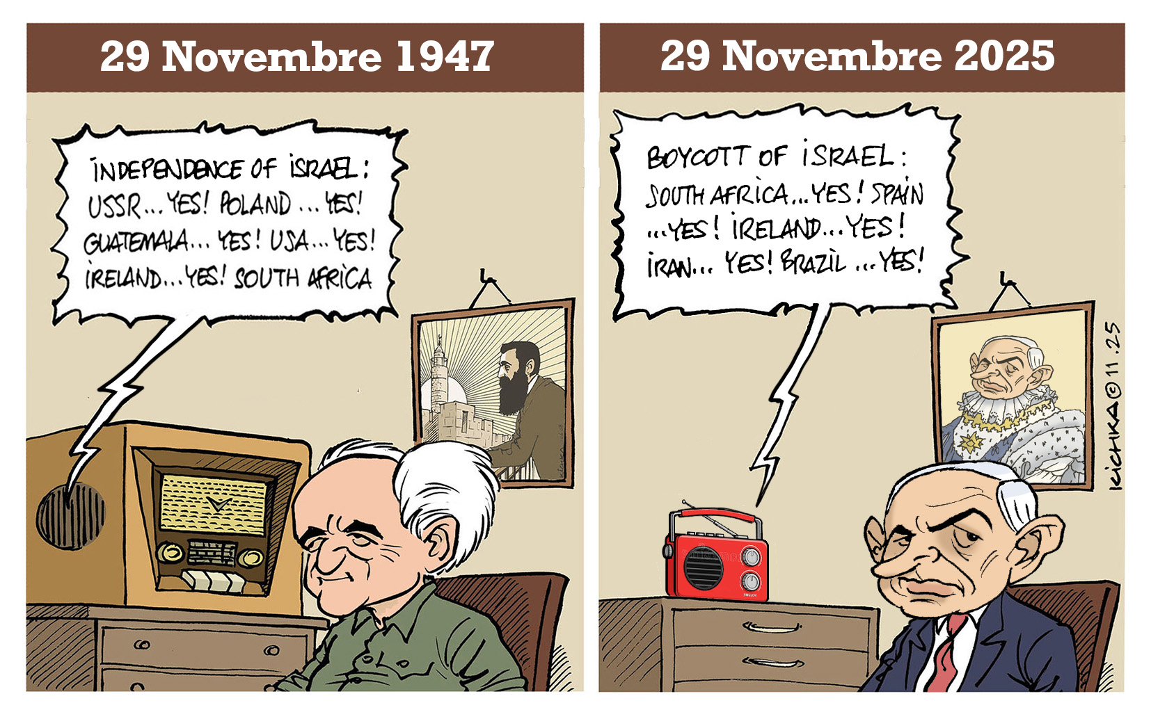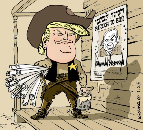 Trump a envoyé une lettre signée de sa main au Président Herzog l’enjoignant d’amnistier Bibi embourbé dans plusieurs procès depuis des années (ses avocats font tout pour mettre des batons dans les roues de la justice). Il prétend que Bibi est victime d’un harcèlement politique (de la Gauche, de l’opposition) alors que les charges contre lui sont accablantes. C’est non seulement ne ingérence inadmissible dans une affaire d’état israélienne mais ça émane d’un président qui a exhorté ses supporteurs à prendre le Capitole d’assaut en 2021. Trump veut-il exhorter les supporteurs de Bibi à prendre le Palais de Justice d’Israel d’assaut? (By the way, Bibi s’en charge très bien tout seul).