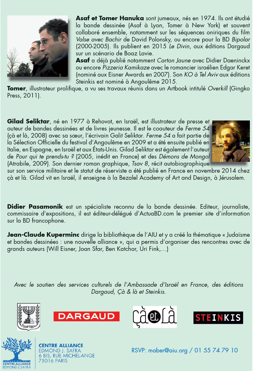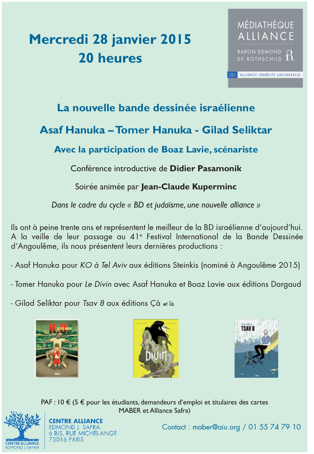 Les frères Assaf et Tomer Hanouka avec leur nouvel album « Le divin ». Assaf avec son deuxième volet de « K.O. à Tel Aviv » et Gilad Seliktar avec son nouveau « Tsav 8 ». Trois auteurs à suivre, et de près!