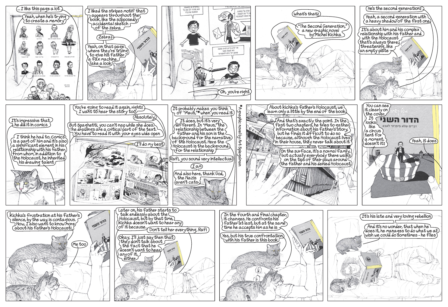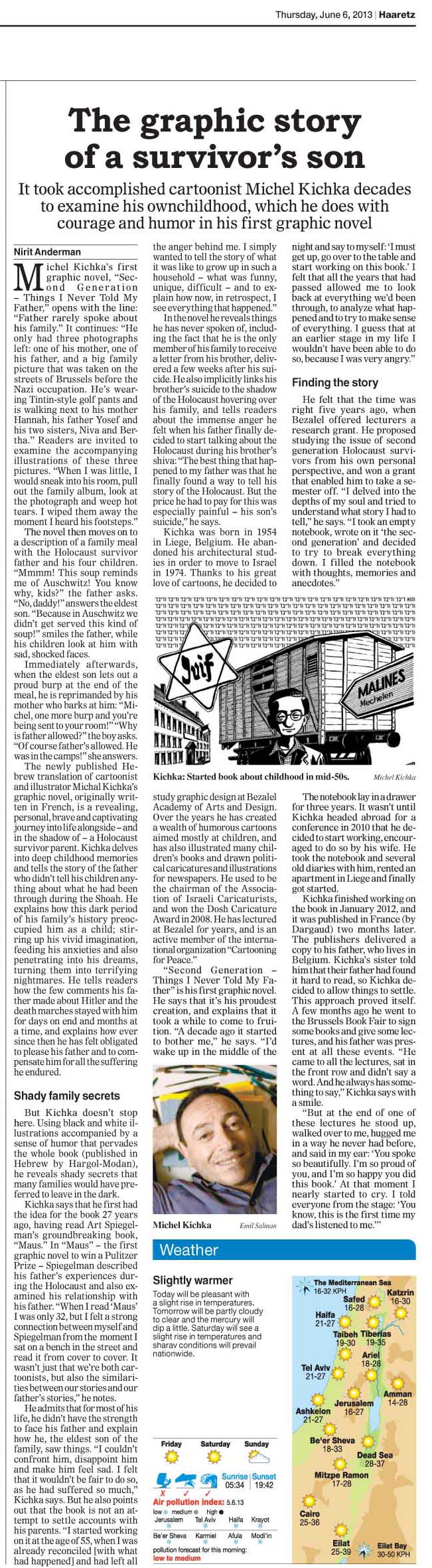 Ilana Zeffren, bédéiste travaillant pour le groupe Haaretz, a créé pour le supplément littéraure du journal, une page de BD à propos de mon roman graphique.