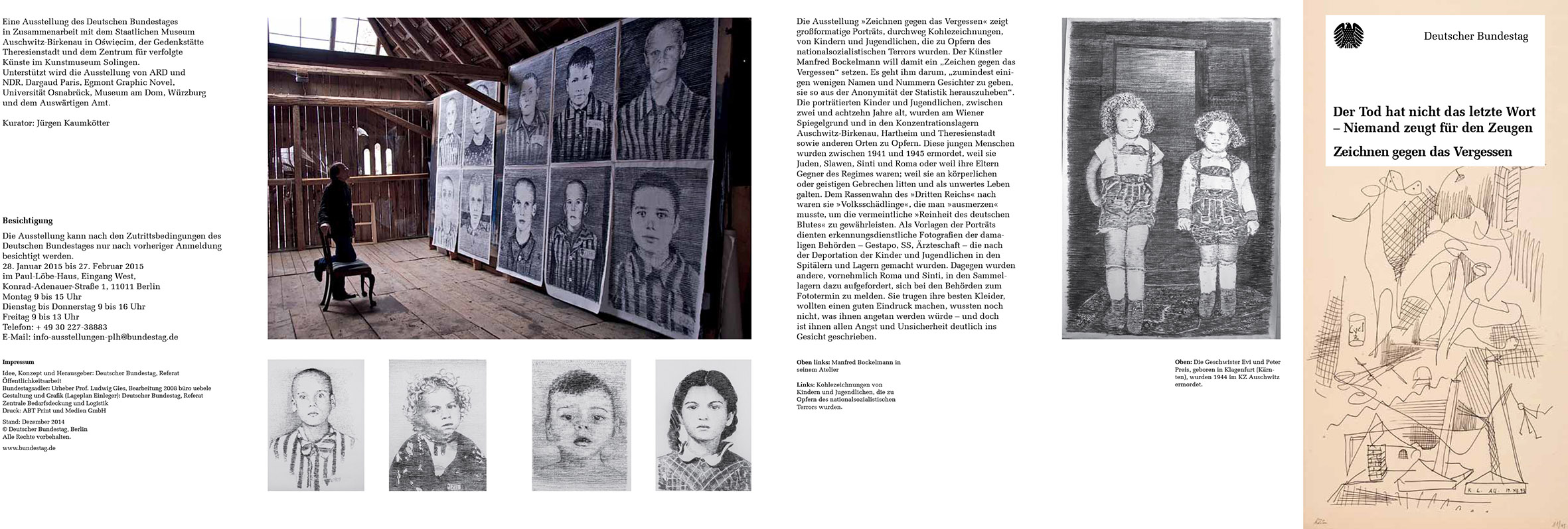 Jürgen Kaumkötter est le commissaire d’une exposition qui sera inaugurée au Bundestag à Berlin ce mardi 27 Janvier, journée mondiale de la libération d’Auschwitz. Jürgen est historien de l’Art et spécialisé dans les artistes de la Shoah. Il a sélectionné les travaux de 14 artistes, morts et vivants, de la première et de la deuxième génération de la Shoah. Le nom de l’exposition est: « La Mort n’a pas le dernier mot– L’art dans la catastrophe 1933-1945« . J’ai eu l’immense privilège d’être choisi parmi des noms tels que Felix Nussbaum, Max Beckmann, Sigalit Landau et d’autres peut-être moins célèbres, mais dont l’oeuvre est d’une puissance évocatrice et artistique rare. L’exposition a été présentée à la presse ce matin. Elle est accompagnée, non pas d’un catalogue, mais d’un livre de 380 pages, richement illustré, qui porte le même titre. Jürgen y a rassemblé le fruit de quinze années de recherche et de travail acharné. Son éditeur est Galiani Berlin, une très grande maison d’édition. L’exposition est soutenue par le Bundestag, le Terezin Memorial, le Centre for Pursuing Arts au Kunstmusuem Solingen, le State Museum of Auschwitz-Birkenau à Oswiecim et l’Université d’Osnabrück.