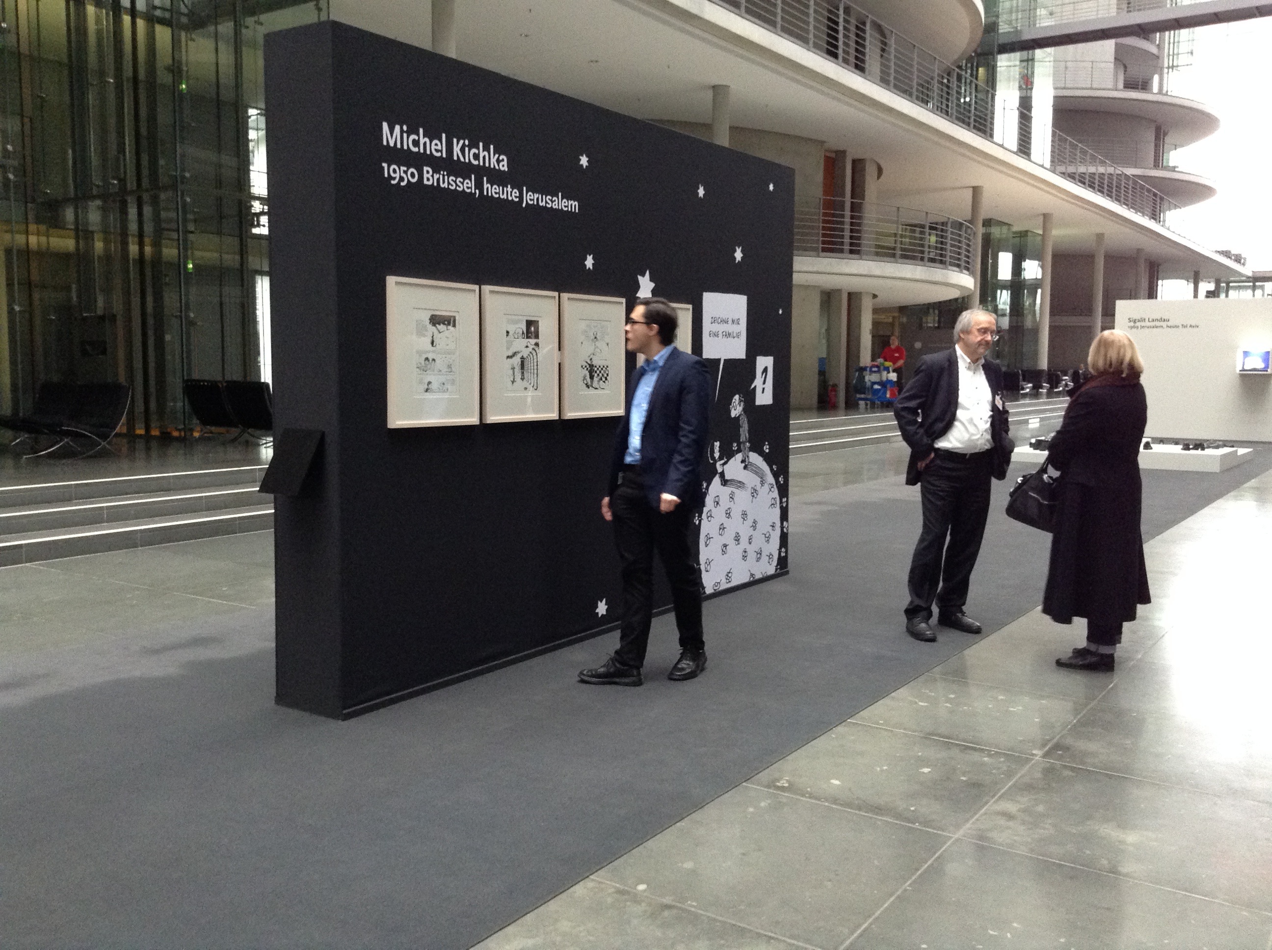 Mon roman graphique Deuxième Génération va participer à une exposition de groupe qui s’ouvrira au Bundestag ce 27 Janvier, date de la commémoration mondiale de la libération d’Auschwitz. Deux autres artistes israéliens, Sigalit Landau et Yehouda Bacon, ont été choisis par le commissaire de l’expo Jürgen Kaumkôtter. Elle sera ensuite exposée au Musée Mocak à Krakovie en Mai. Une manière tout à fait exceptionnelle de marquer cet événement! Mon père sera le 27 à Auschwitz, accompagné de David, notre fils aîné, et de mon cousin Sacha. Il y aura donc trois générations de Kichka au même moment sur le sol allemand et polonais. Mon père n’aurait jamais imaginé cela dans ses rêves les plus fous en Avril 45, une minute avant la libération!