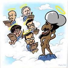 Si Dieu existe et qu’il voit tout de son nuage, il doit éclater de rire pour ne pas pleurer. Les caricatures ont pour lui un rôle thérapeutique, elles l’aident à évacuer et à sourire, parfois à rire. Et il en a bien besoin car il est constamment sous pression face à ses trop lourdes responsabilités. Il voit dans l’humour une incarnation de l’esprit, terme qu’il adore lui qui est dans le spirituel en plein.
