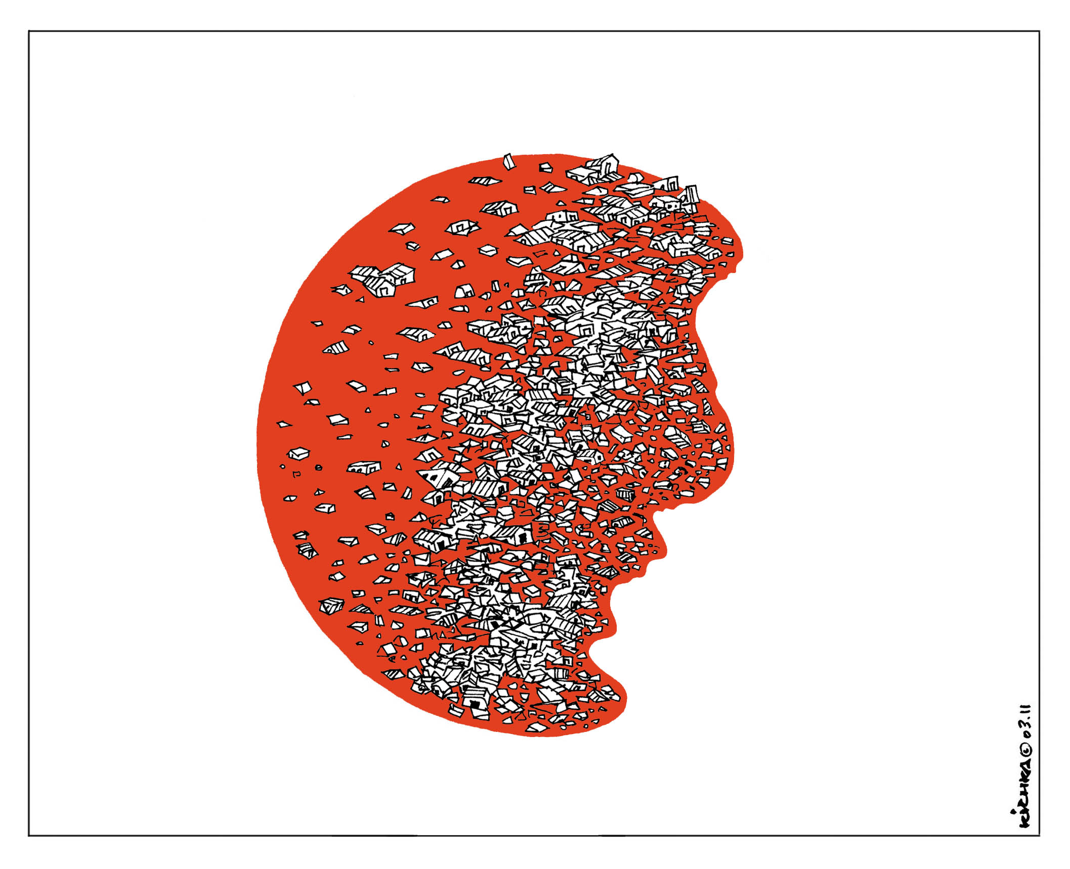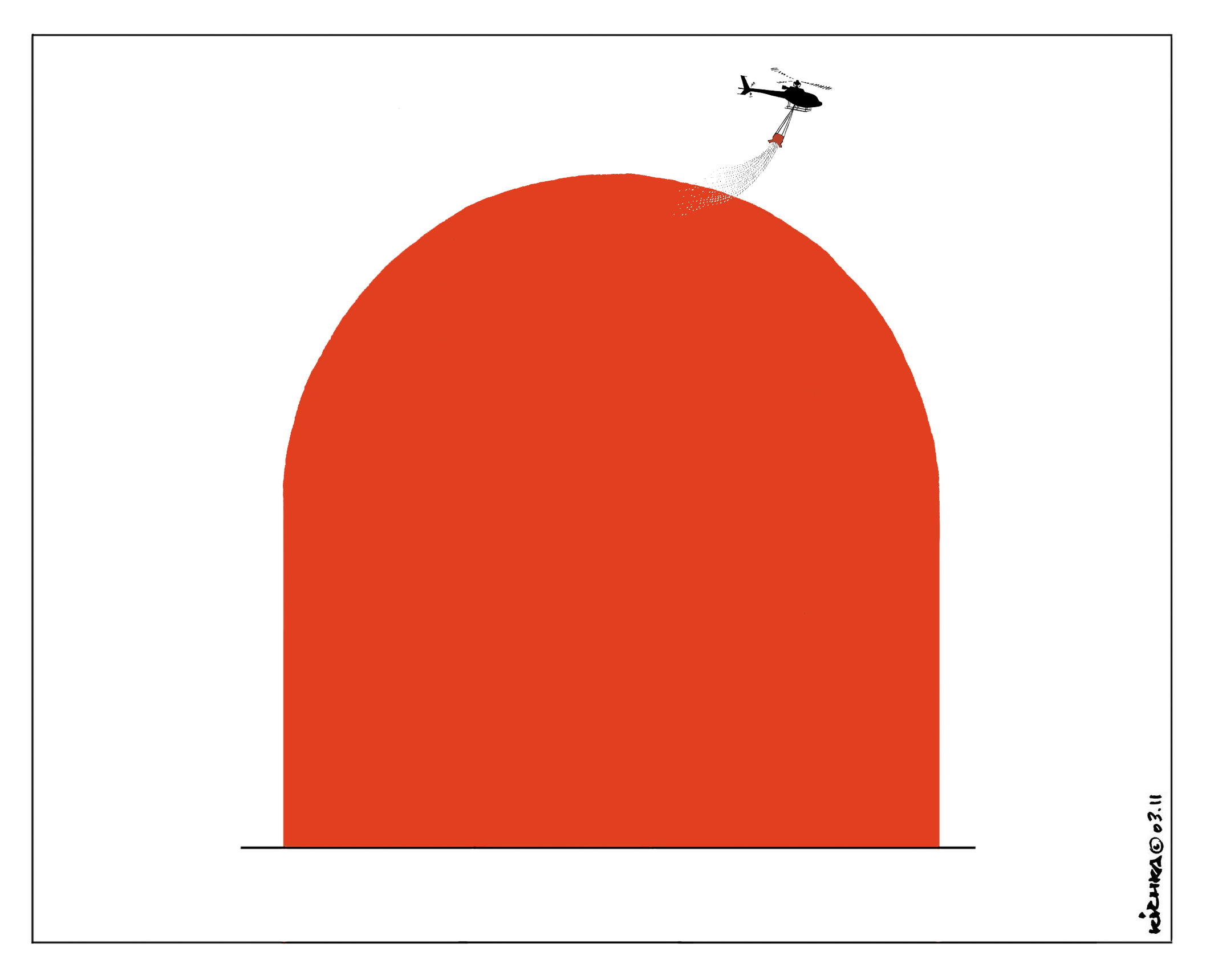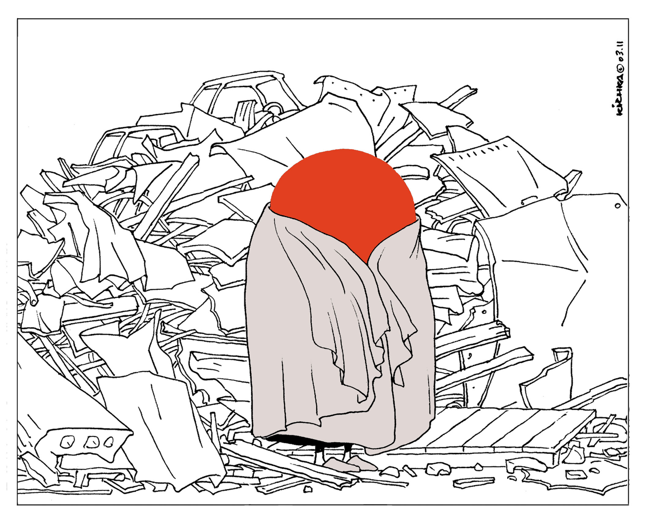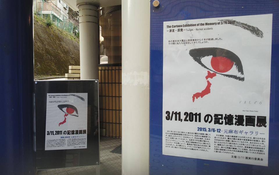 Aujourd’hui s’ouvre à Tokyo une exposition de dessins de presse pour commémorer le tremblement de terre qui frappa le Japon le 11 Mars 2011. Le dessinateur Yoshiaki Yokota avait demandé à ses collègues du monde entier d’envoyer leurs dessins réalisés suite à cette catastrophe naturelle et une exposition avait été montée dans l’urgence afin d’ offrir au public japonais un regard autre et un peu décalé, ce qui représentait un défi en soi. J’y avait participé.