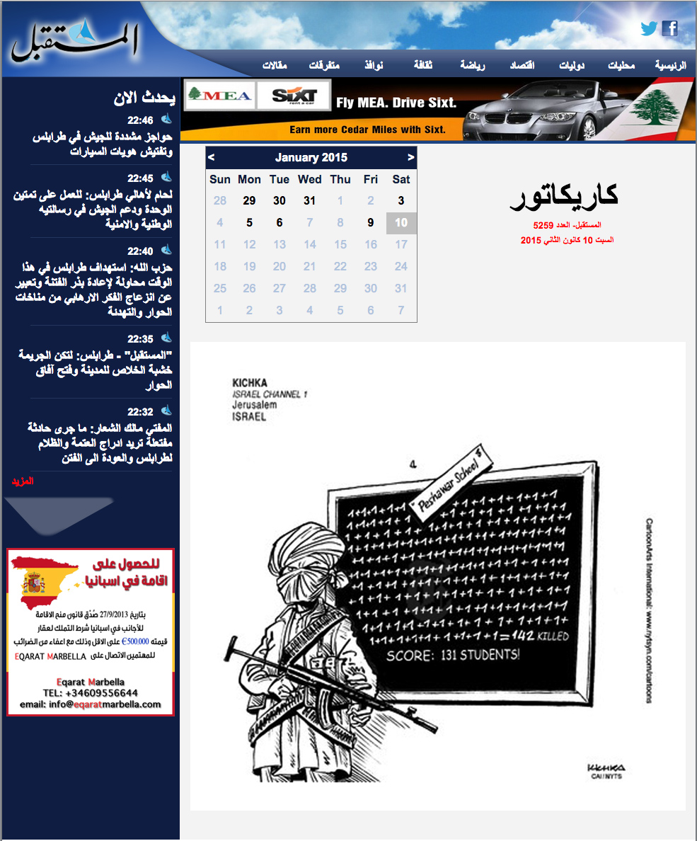 Dessin réalisé pour ma chronique sur i24 news et publié sur le site du New York Times cartoons. delà il a été acheté par le journal libanais Al Mustaqbal. Ce qui prouve que le chemin le plus court entre Israel et le Liban, son pays voisin au nord, traverse cybernétiquement deux fois la Méditerrannée et l’Océan Atlantique. Il n’y a pas de contrebande de pixels entre nos deux pays!
