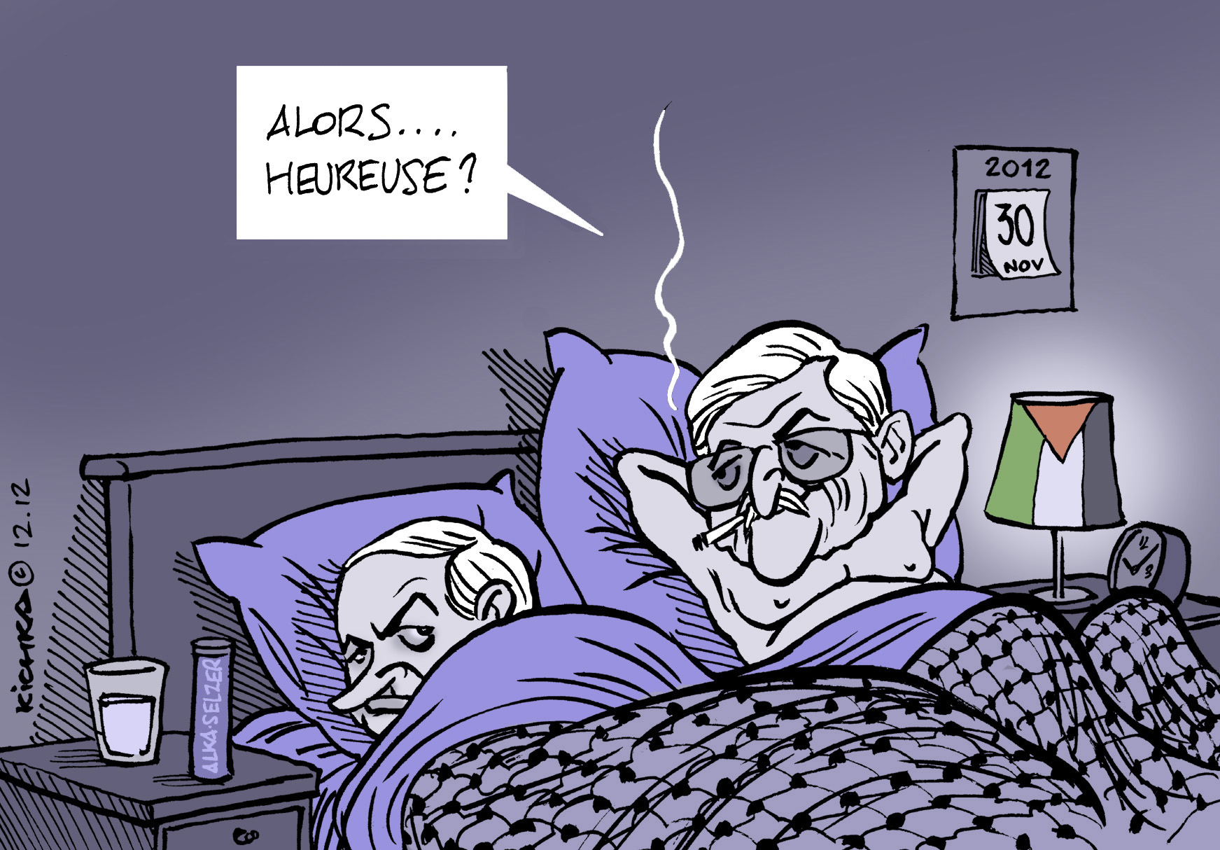 Haled Mashal triomphe à Gaza où il réitère – quelle surprise! – sa haine d’Israel et la création de la Palestine à la place d’Israel. Effacer Israel de la carte du monde reste son projet d’avenir. Qu’en a-t-il à cirer d’un ennième conflit armé entre Israel et Gaza où il ne se rend qu’une fois tous les 56 ans? Abbas arrive à la traîne, renforcé par l’ONU mais affaibli sur le terrain. Israel aurait pu et du éviter cet affaiblissement par un renouvellement des pourparlers. Bibi aurait du courir derrière Abbas, même si les deux étaient récalcitrants. Ce n’est pas en clamant qu’il n’y a pas de partenaire et en annonçant la construction massive dans les colonies qu’on fera avancer le Schmilblik. Bibi a mis Israel dans un isolement diplomatique total. Et les élections de Janvier ne vont rien améliorer.