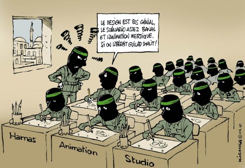 Un Un dessin animé réalisé par le Hamas montre Noam Shalit voyant, dans un sombre cauchemar, son fils Guilad revenir dans un cerceuil. Le meilleur moyen de réagir face à cette guerre psychologique macabre et cynique, est par une caricature libératrice.