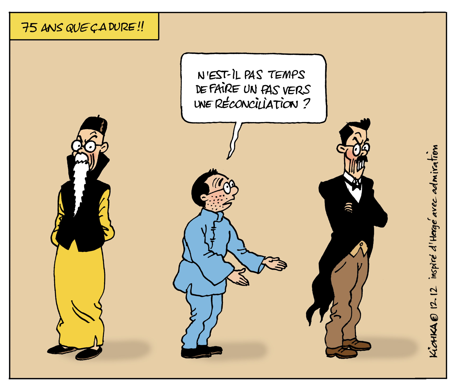 Pour illustrer ce sujet, Le Lotus Bleu s’est immédiatement imposé à moi. Un ami, prof d’univ de Tokyo, m’a un jour confié que cette guerre a été totalement éclipsée dans ses livres d’histoire et que cet album de Tintin est resté pendant des décennies le seul livre où elle était mentionnée.