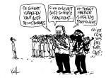 Plantu (Le Monde), Kroll (Le Soir) et Vadot (Le Vif/L’Express).