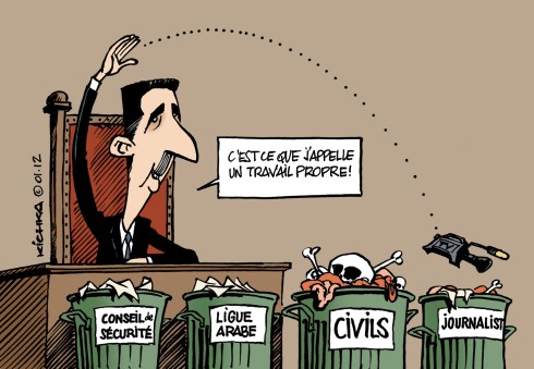 Posted in Cartoons, tagged Assad, envoyé spécial, Gilles Jacquier, Syrie on 01/14/2012| 2 Comments »